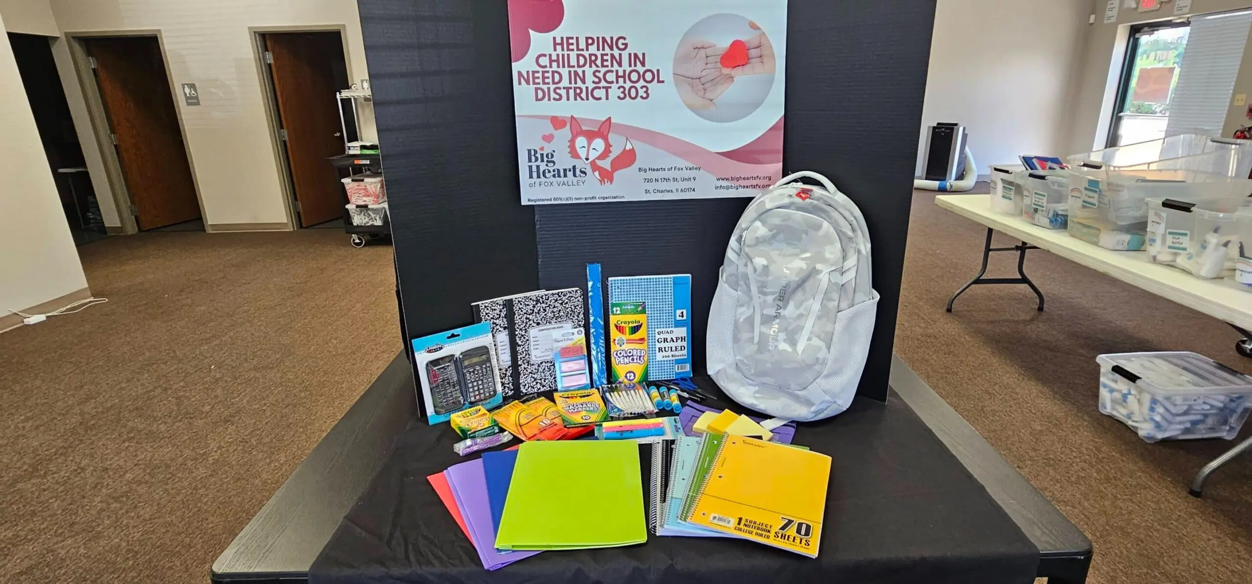 Big Hearts of Fox Valley is dedicated to making a difference in our own community by providing essential items to local children in need. If a family in D303 is in need of assistance with back-to-school supplies, we’re here to help families kick off the school year right.